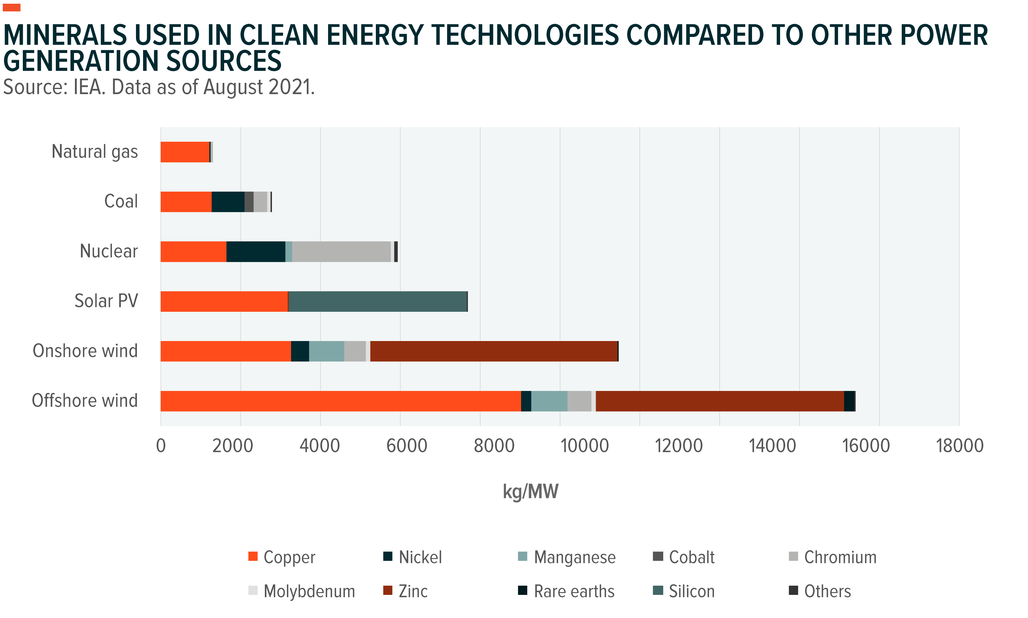 - Companies that specialise in producing these elements – such as miners – are strongly positioned to benefit from the energy transition.
